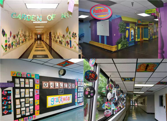 小朋友在六一环创营造的氛围下,开开心心上幼儿园,走廊变画廊,在这样得走廊上走进教室,简直就像是走在天然的展区一般。