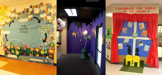 教室门可以把科技知识不知道墙面上,这种环创很适合设计大型的主题或者背景。孩子们可以探索的发现的过程中接触初级的物理相关知识。