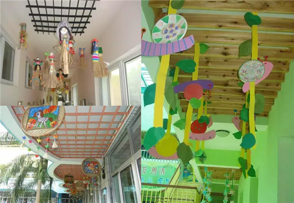 1、走廊、楼道这些公共的环境都是家长们最常活动的地方!每天从这些精美的创意吊饰下经过相信是一件心情很好的事情吧!