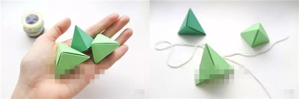 制作步骤:用卡纸制版,做一个由四个8厘米的等边三角形组成的长方形版型。