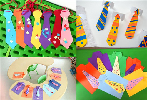 孩子们自己为爸爸绘画领带,而这个领地是能翻开的,上面是装饰画,上色等。