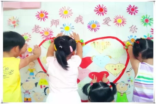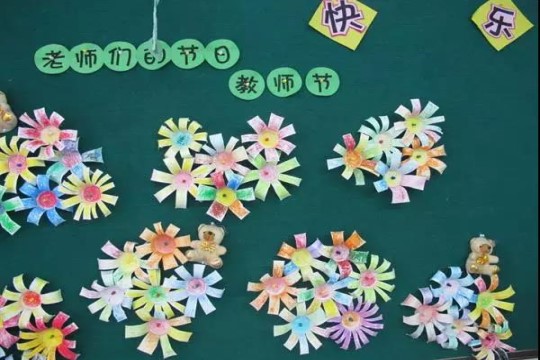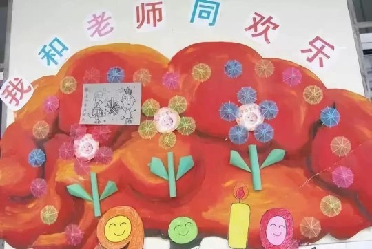 5.教师节在下周就到来了,教师们布置环创的时候,其实可以采用孩子们的作品,不管是画画的,还是手工的,或者是老师和孩子、家长和孩子一起亲自制作的,都是可以作为教师节环创的素质和材料。