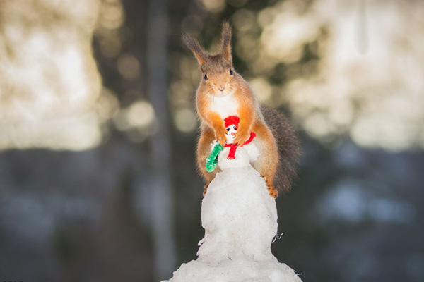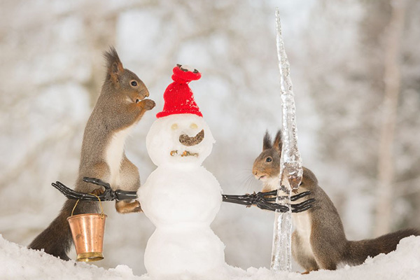 (2)你们想一想,小松鼠为什么要在小熊家门口堆雪人?