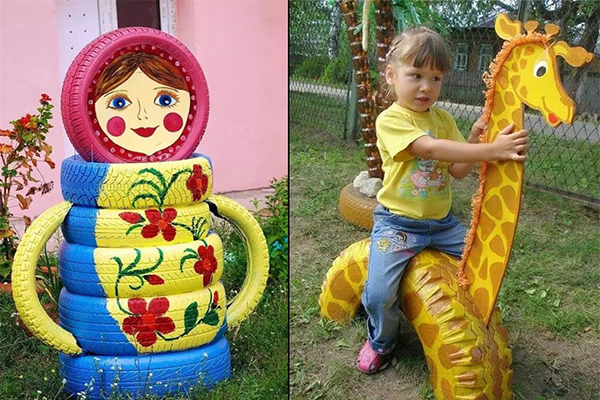 幼儿园废旧轮胎的创意大变身
