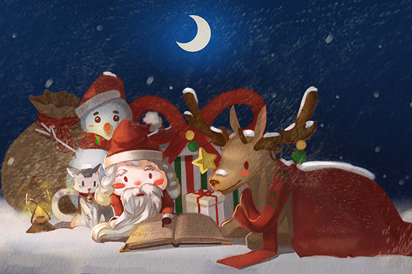 3.教师在讲一次故事,引导幼儿主动联想圣诞老人送礼物给小朋友时的场景是什么样子的。