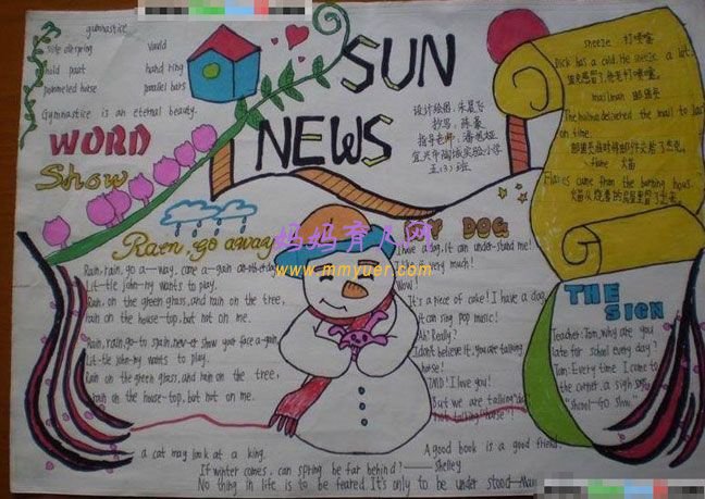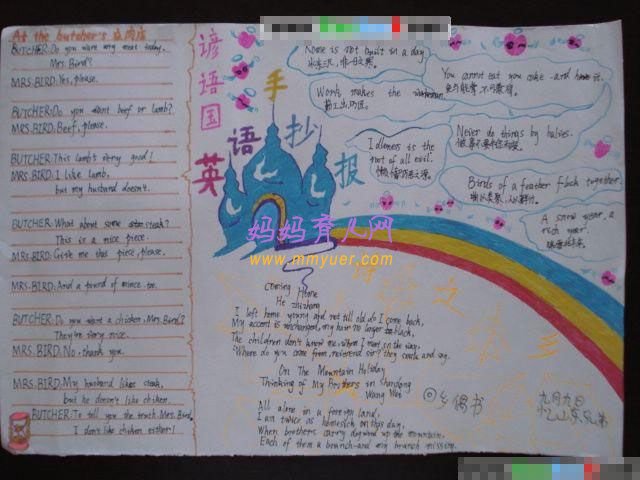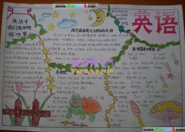 办小报是小学生最常接到的“任务”。而英语手抄报是以英语为内容的手抄报,在学校,手抄报是第二课堂的一种很好的活动形式,和黑板报一样,手抄报也是一种很好的宣传工具。不仅省力,还可以提高英语知识。