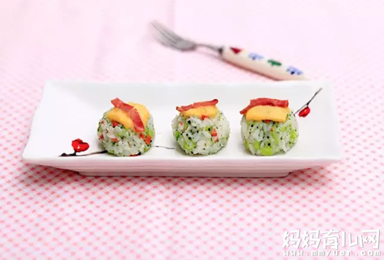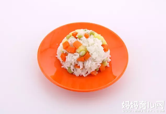 缤纷的蔬菜软饭不仅营养丰富,而且颜色多彩鲜艳,胡萝卜和豌豆本身又带有甜味,所以小朋友更喜欢吃。