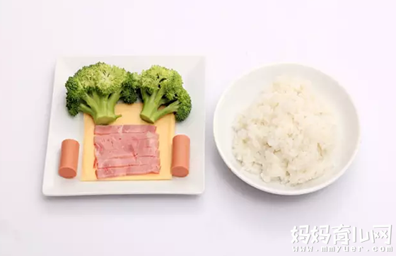 白米饭:两碗,西兰花:150克,芝士片:适量,火腿:适量,培根:适量。
