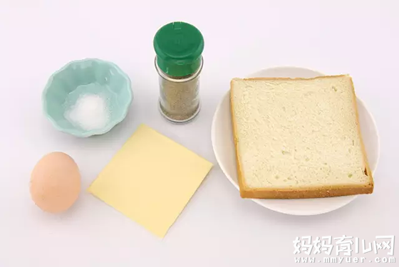 鸡蛋1个、吐司1片、芝士少许、盐少许、黑胡椒粉少许