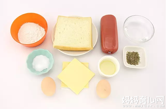 吐司4片、火腿片4片、奶酪片4片、鸡蛋2个、洋香菜少许、胡椒粉少许、盐适量、油适量、面粉2汤匙、水1汤匙