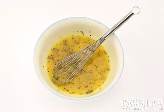 5、蛋磕入碗中,加入少许盐、胡椒粉、切碎的洋香菜,搅打均匀。