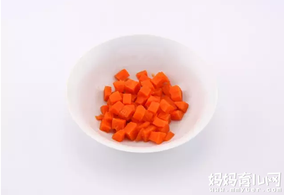 4、捞出胡萝卜切碎成小丁状。