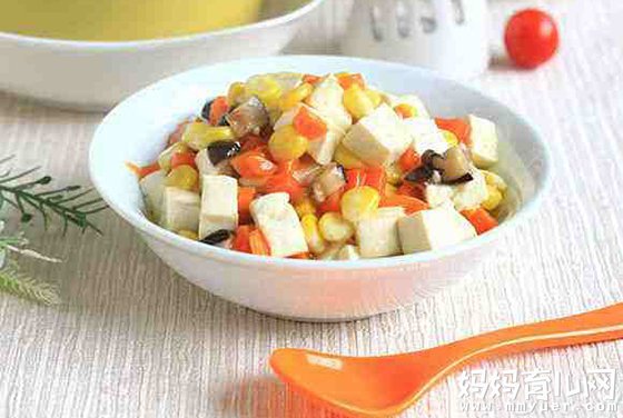 豆腐营养丰富,与蛋类、肉类、鱼肉等食物或丰富的蔬菜搭配给孩子吃,可大大提高豆腐蛋白质的营养利用率。