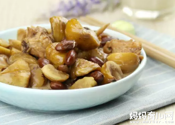步骤6:半个小时之后,放入栗子和红腰豆一起,拌匀之后,接着焖煮半个小时。等到食材熟透,红腰豆、栗子煮软之后,即可出锅。