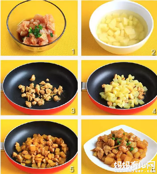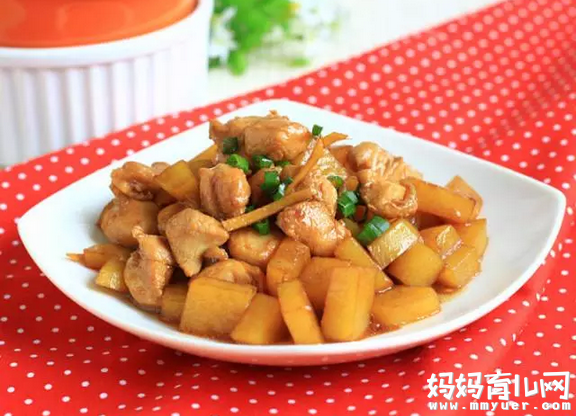 土豆400克、鸡肉500克、食盐4克、姜2片、生抽4克、植物油8克、小葱1根。