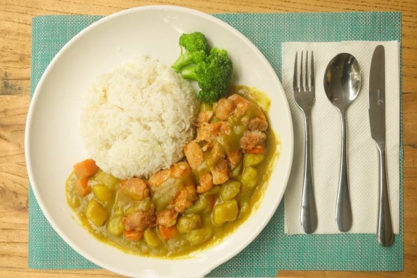 7、这道菜做法很简单,关键口感丰富,孩子绝对喜欢吃。家长买咖喱的时候,注意买没有辣味的哦。