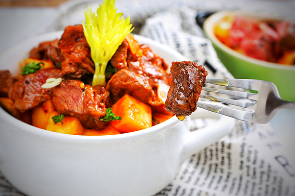(5)在出锅之前放入土豆和洋葱一起烧一会儿,等到肉熟烂、汤汁粘稠之后就可以调味出锅了。