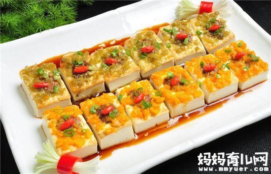 虾肉具有通乳功效,是因为它和豆腐一样含有大量的蛋白质和钙。蒸酿豆腐角口味软嫩、鲜香,还含有适量脂肪,非常适合妈咪产后补养的需要。