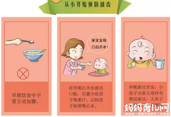 不要认为母乳喂养不会出现龋齿。孩子已添加了辅食,辅食中有糖分,比如粮食中的淀粉,在口腔内细菌作用下,糖分变成酸,附着于牙齿上,从而腐蚀牙齿导致龋齿。