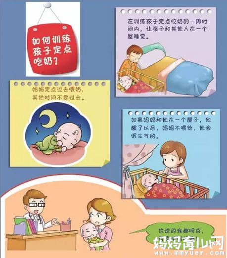同样的道理,训练夜间定点吃奶的习惯期间,夜晚最好让他和其他家人在一个屋子里睡。