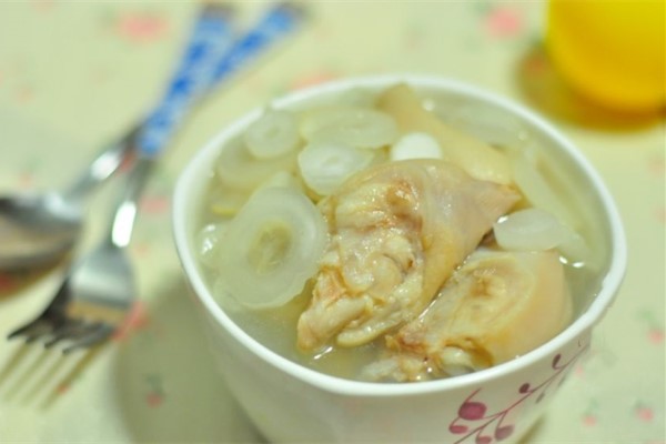 做法:先把猪蹄洗干净,刮干净皮毛,与通草一同放置砂锅中熬煮,先加入1.5l的水急火煮成汤,水开之后转慢火炖1-2小时。
