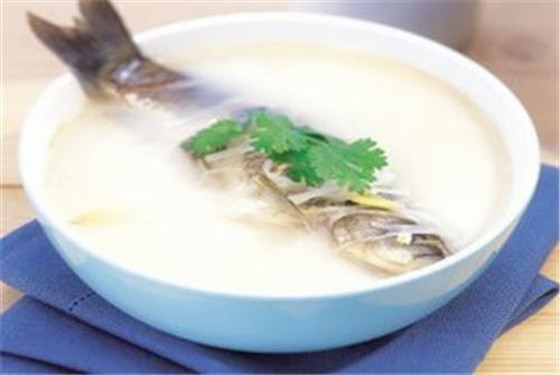 归芪鲫鱼汤:鲫鱼洗净处理干净,然后与当归、黄芪同煮至熟即可,产妇吃鱼饮汤即可。