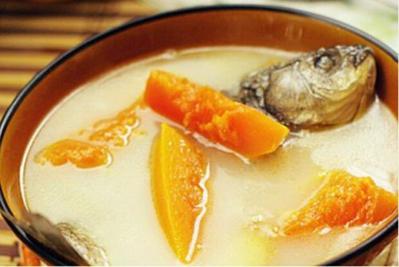 鲫鱼炖木瓜:鲫鱼处理干净,木瓜去皮切成块,红枣去核,冲洗干净。锅内倒油烧热,放入姜片煸香,加入鲫鱼稍微煎一下盛出,坐锅加油烧热,加入水烧开后放入鲫鱼,木瓜,红枣,料酒,烧开锅后用小火煲两个小时即可。