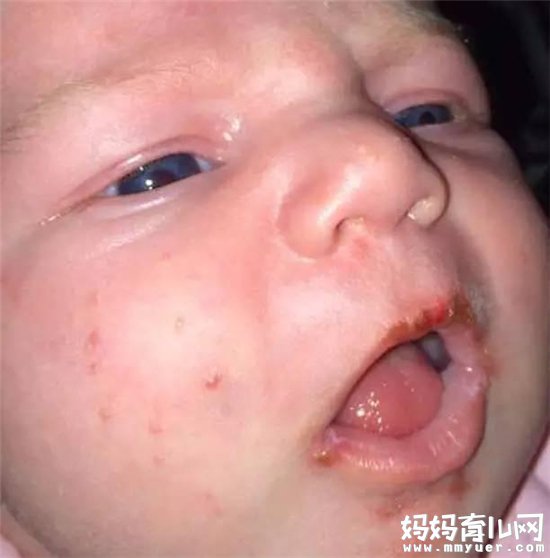 这位妈妈讲述:因为小布鲁克刚刚满月,最近有好多亲朋好友过来看她,大家都争相恐后地抱她、亲她,结果就被染上了疱疹病毒,尽管当时来的人身上并没有显现出来。