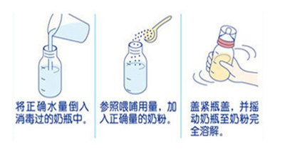 如婴儿体重为3公斤,则需奶3×100(120)毫升=300(360)毫升奶,加水后配出的总量再以顿数除,可得出每顿用奶量。如二份奶兑一份水则为300(360)毫升奶+150(160)毫升水,总量为450~480毫长,分成7~8次服用,每顿为60~70毫升。