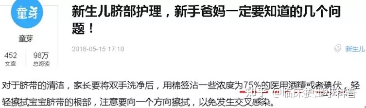 也许你会说这是三年前的帖子新生儿脐带护理碘伏,那么来看看近两年公众号上关于脐部护理的消毒剂,发现答案确实不一样,有的建议用碘伏,有的建议用酒精: