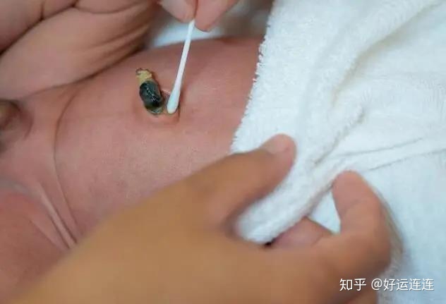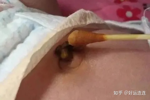 脐带脱落后,脐窝内常常会有少量分泌物,每次洗完澡后,可用酒精棉签消毒脐带残端及脐轮周围,也可使用5%聚维酮碘,使脐带残端脱水,这样容易干燥。