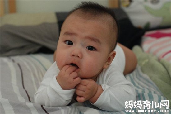 4、社会适应:宝宝开始认生了。如,生人抱起时,宝宝会不高兴;妈妈抱起时会高兴。