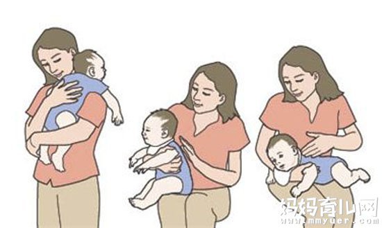 尽量把宝宝直立抱在肩膀上,以手部的力量将宝宝轻扣着,再用手掌轻拍宝宝的上背,促使宝宝打嗝。