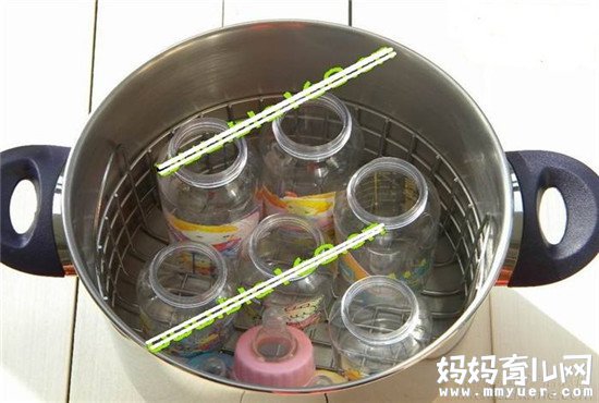 3、蒸汽消毒法:将奶瓶洗干净后,去掉奶嘴和盖子,放在蒸气消毒锅里,具体操作看消毒锅的说明书。这里提醒,如果宝妈用的pc奶瓶的话,建议不要用蒸汽消毒法。