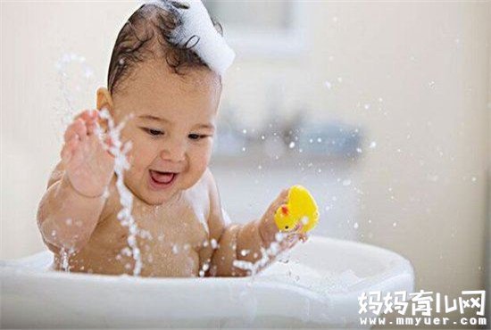 3、最好选择盆浴:宝宝洗澡最好采取盆浴方式,盆底事先垫一块毛巾,以免宝宝滑倒。盆里的水量不要太满,保持在宝宝的腹部以上、肩部以下即可,还可以让宝宝拿一个自己喜欢的玩具玩。