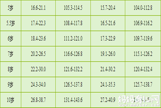 小编的话:以上是为大家分享的孩子身高体重对照表,里面有0-10岁孩子的具体身高,体重发育详情。其实,孩子长得好不好根本没有必要去跟别的孩子作比较。只要宝宝是健康的,身高,体重都在正常范围内就是挺好的。平时里注意营养的摄入,多给宝宝有营养的食物和水果,多带宝宝晒晒太阳,做一些适合的运动增强身体抵抗力。