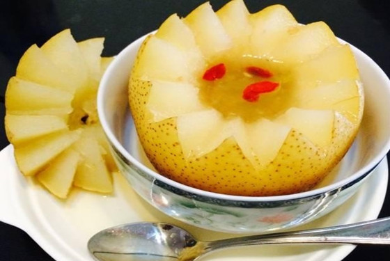 川贝10克,雪梨1个,冰糖适量。将雪梨洗净切成小块,一同炖煮1小时即可。此炖品具有化痰止咳、润肺利咽的功效。