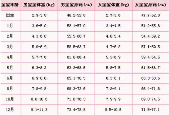 0-12月宝宝身高标准表