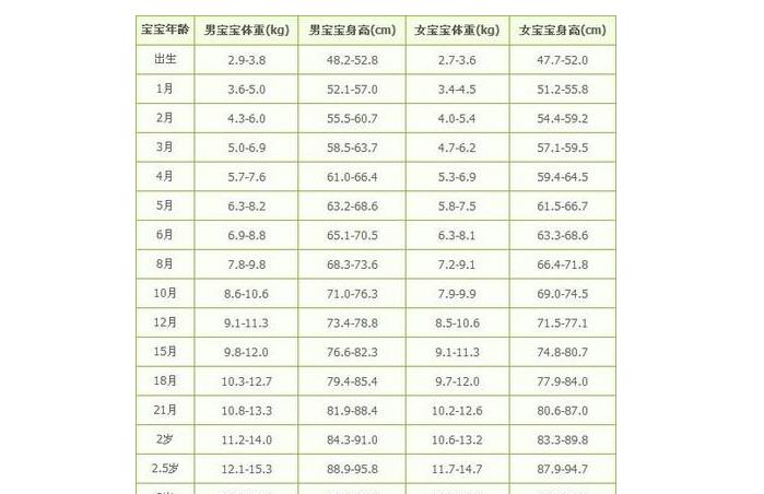 宝宝的身高体重标准