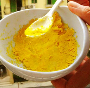2、也可将蛋黄泥用牛奶、米汤、菜水等(略加一点盐或糖)调成糊状,即可食用。