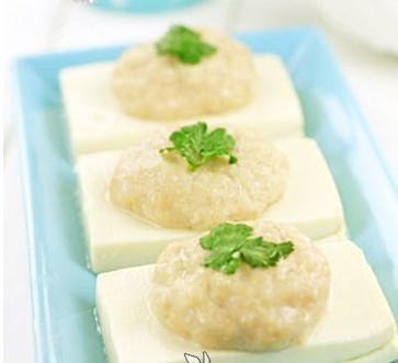 制作方法:三文鱼洗净,剁成泥,拌入少许淀粉。豆腐洗净,切大块,葱洗净,切末。在切好的豆腐块上铺上拌好的鱼泥,放入蒸锅,用大火蒸7分钟至熟,出锅后加葱末、盐、香油即可。