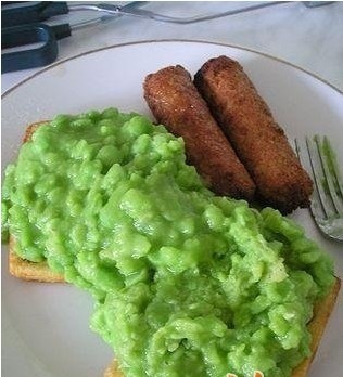 制作方法:将豌豆洗净,放入沸水中炖煮熟烂。取出炖烂的豌豆捣碎,过滤后与肉汤一起搅匀。