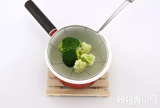 1.将西兰花和菜花洗干净,然后放入沸水中焯烫熟后捞出。