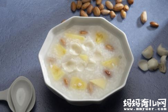 3、把大米、花生米洗净,放入沸水锅中煮,当米粥将熬好时,放入松花蛋丁、酱油、味精;