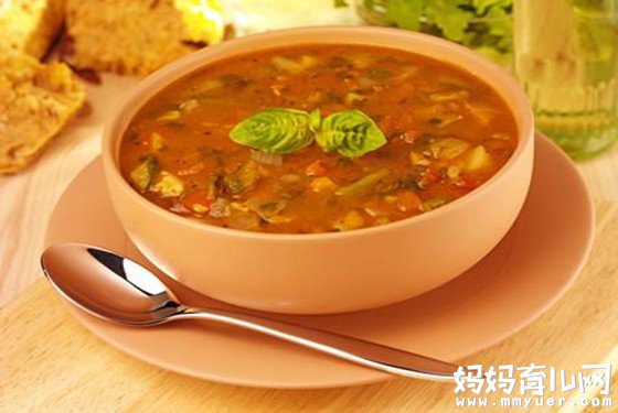 食材:西红柿50克、洋葱20克、高丽菜30克、白米20克。