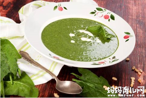 5、米饭加水熬成稀饭,然后将菠菜泥与蛋黄泥拌入即可。