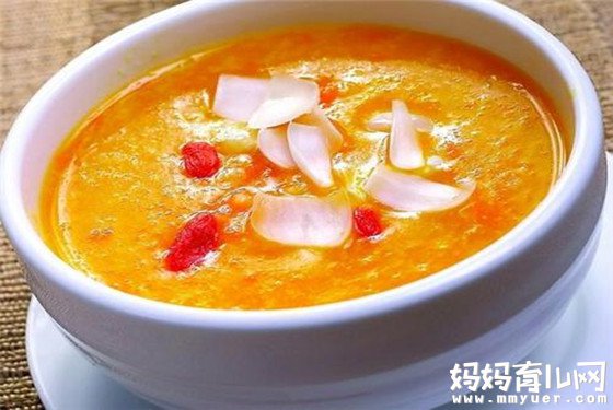 3、孺米山药汁、枸杞子下入锅中煮成羹,放白糖即可。