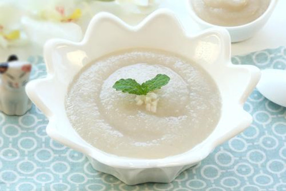 3.糯米洗净,入清水中浸泡3小时后和山药一起入搅拌机打成汁备用;