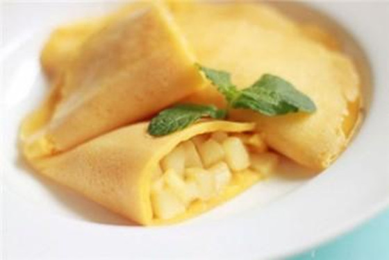 3、平底锅烧热,舀入一大勺面糊,摊成圆饼即可,也可以加入少许油摊蛋饼。