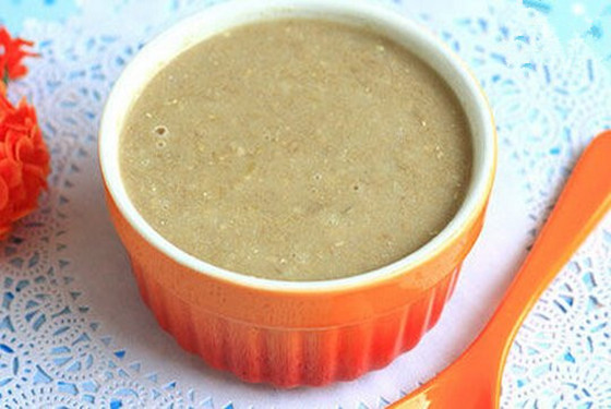 3、将煮好的燕麦牛肉粥放进搅拌机。打成糊状,即可用汤匙喂养宝宝。